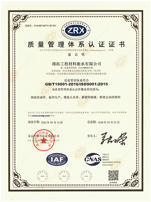 路拓工程材料衡水有限公司坐落于衡水市滨湖新区开发区, 依傍美丽的衡水湖畔,交通便利、环境优美,是一家集研发、生产、销售、安装为一体的综合型实业公司。 主要生产热镀锌钢波纹管涵系列产品,主要产品有:钢波纹管涵洞、钢制波纹管、金属波纹管涵、钢波纹板等,下设有钢波纹管涵生产车间,产品广泛应用于涵洞、通道、小桥、隧道、排水沟等场所,强度高、柔性好、重量轻、施工快、寿命长、生态环保、性能稳定、工程总体造价低、质量保证。由于我们对产品品质的苛刻要求,以及对细节的精益求精、不断改进,产品得到了广泛的认可。公司组织机构健全,设备配套齐全,生产工艺先进。生产严格遵守国标、部标和图纸要求,已成为集设计、开发、生产、服务于一体专业的综合型制造企业。公司始终坚持“质量铸品牌,服务赢信誉,效益促发展,责任树形象”的经营理念,围绕精心制造、超值服务、品牌经营的发展主线,坚持科学管理,开拓创新,以压力激发动力,以凝聚力激活生产力,着力提高自主创新能力,经营中价格灵活,服务周到,使市场占有率逐年攀升,产品深受省内外施工单位和建设单位的信任和青睐。公司一贯遵循“让我和更多的人生活得更美好”的企业宗旨,发扬“努力拼搏、开拓创新、锐意进取”的创业精神,坚持“诚信守诺,追求卓越”和“团结向上、实干担当”的企业文化,不断提升综合实力和核心竞争力,为祖国交通事业的跨越式发展做出更大贡献。